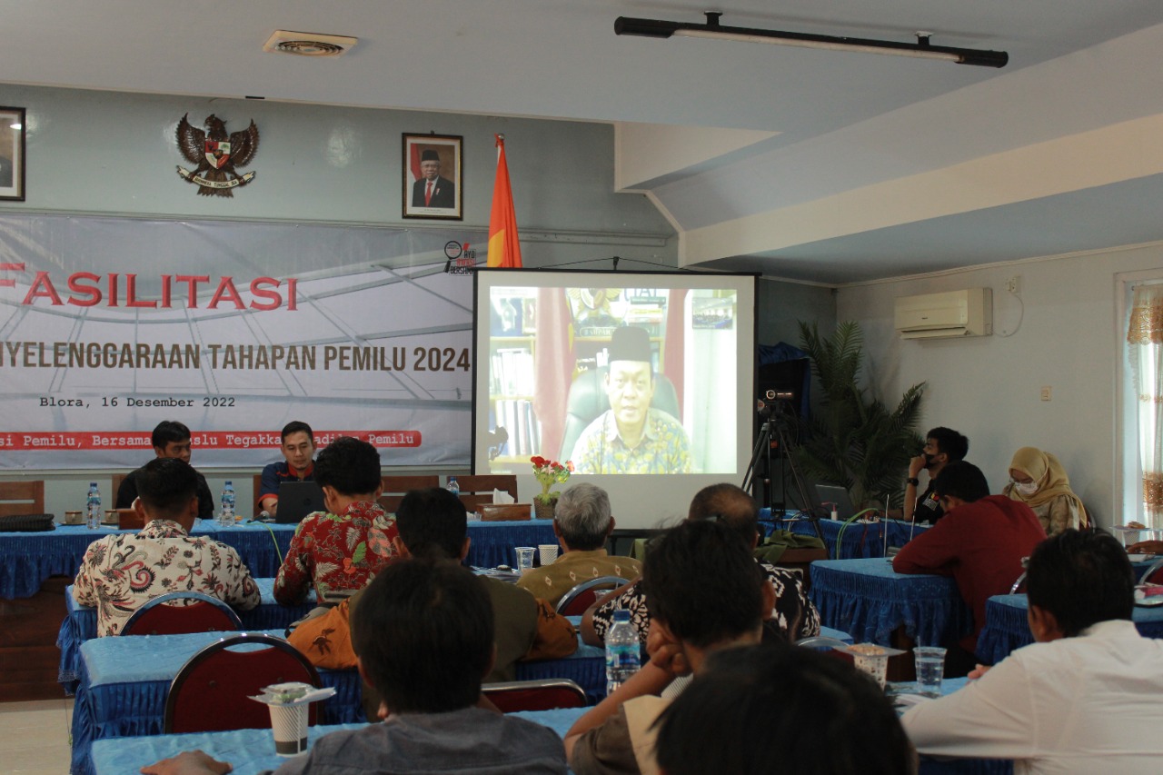 Blora-Pasca penetapan partai politik peserta pemilu tahun 2024 oleh KPU RI pada 14 Desember yang lalu, Bawaslu Kabupaten Blora gelar Rapat Koordinasi Fasilitasi Pengawasan Penyelenggaraan Tahapan Pemilu 2024, Jumat (16/12).