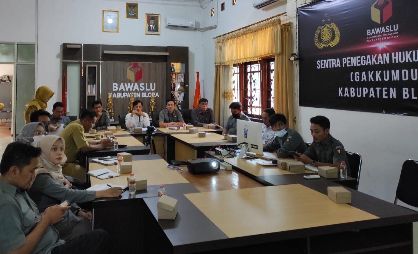 Blora - Bertema Persiapan Pengawasan Seleksi Badan Adhoc KPU untuk Pemilu Tahun 2024, Bawaslu Kabupaten Blora gelar Sosialisasi Peraturan dan Non Peraturan Bawaslu, Senin (21/11) di Kantornya.