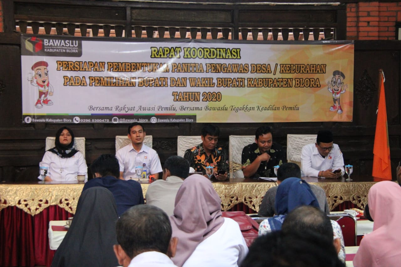 Blora - Bawaslu Kabupaten Blora menggelar Rapat Koordinasi dengan seluruh Panwaslu Kecamatan se-Kabupaten Blora guna mempersiapkan Pembentukan Panwaslu Kelurahan/Desa.
