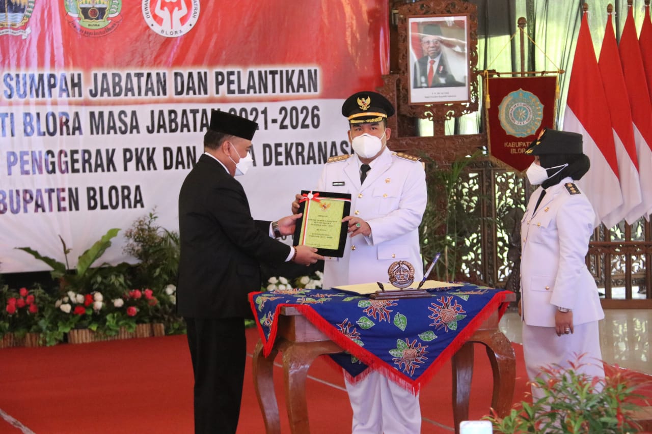 Keduanya resmi menjabat sebagai Bupati dan Wakil Bupati Blora dalam upacara pengambilan sumpah jabatan dan pelantikan Bupati dan Wakil Bupati Blora Masa Jabatan 2021-2026, yang dilaksanakan secara Virtual di Pendopo Rumah Dinas Bupati Blora, dan dipimpin Gubernur Jawa Tengah Ganjar Pranowo, Jumat (26/2), bersamaan 17 Kepala Daerah yang lain di Jawa Tengah.