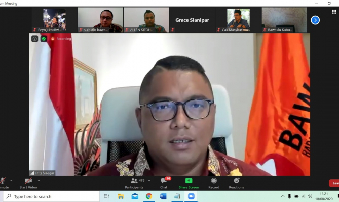 Anggota Bawaslu Fritz Edward Siregar saat mengikuti diskusi daring Bawaslu dan Facebook Indonesia tentang Pengawasan Iklan Kampanye dan Dana Kampanye di Facebook, Senin 10 Agustus 2020/Foto: Humas Bawaslu RI