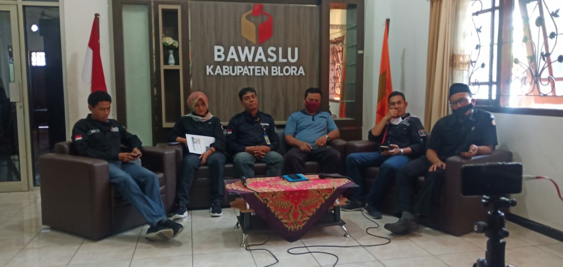 Sesuai judul, diskusi daring ini menggunakan aplikasi meeting on line dan juga disiarkan langsung melalui akun-akun medsos Bawaslu Blora sebagai pemanfaatan teknologi di masa Pandemi Covid-19.