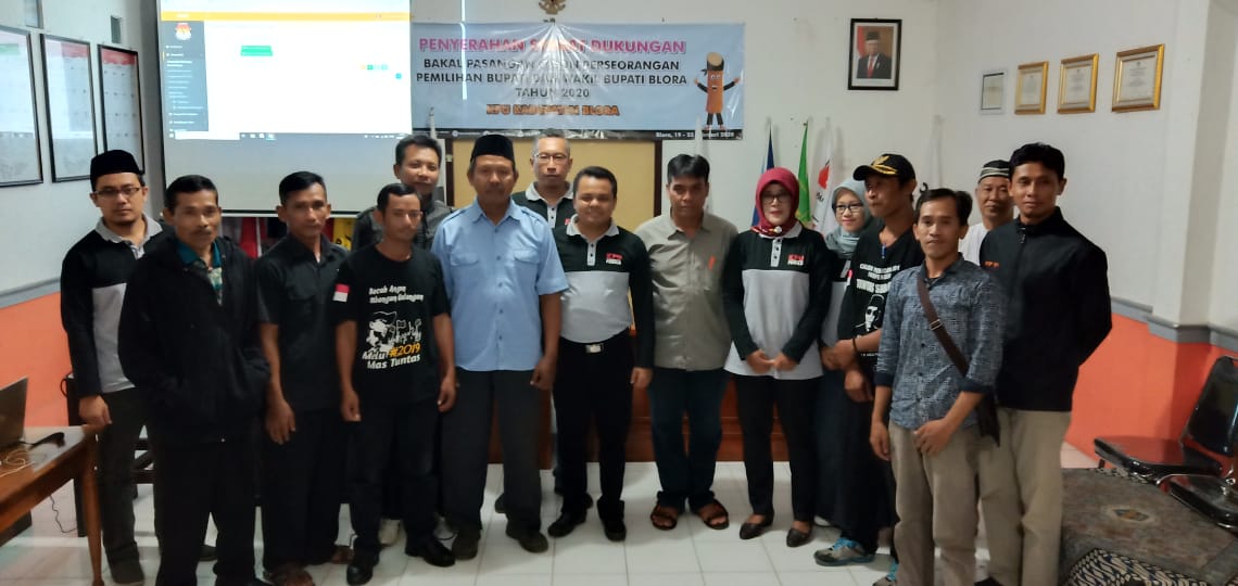 Blora - Pemilihan Kepala Daerah (Pilkada) Kabupaten Blora tahun 2020 dipastikan tidak diikuti pasangan calon dari jalur perseorangan. Pasalnya, hingga batas akhir penyerahan syarat dukungan hari Minggu (23/2), pukul 24.00 tidak ada paslon yang menyerahkan syarat dukungan kepada KPU setempat.