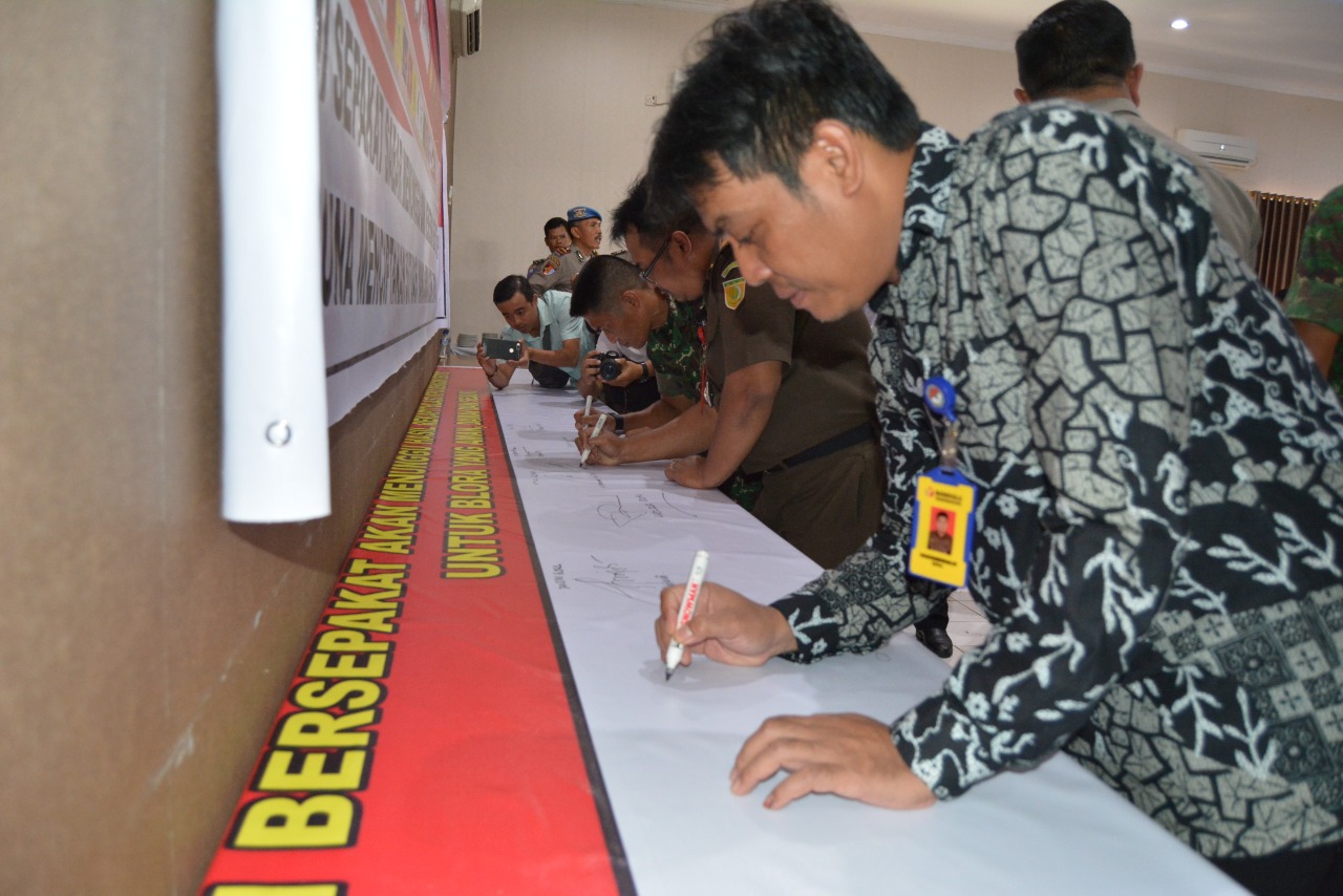 Blora – Berbagai komponen masyarakat Blora mengemukakan tetap menjaga situasi yang aman, dan damai serta tetap menjaga persatuan dan kesatuan pasca pemungutan suara Pemilu 2019 dalam Forum Silaturahmi Komponen Masyarakat Blora.Blora – Berbagai komponen masyarakat Blora mengemukakan tetap menjaga situasi yang aman, dan damai serta tetap menjaga persatuan dan kesatuan pasca pemungutan suara Pemilu 2019 dalam Forum Silaturahmi Komponen Masyarakat Blora. Menurut Kapolres Blora AKBP Antonius Anang, sampai saat ini situasi di Blora terpantau aman dan kondusif. Dengan personil Polri yang masih bersiaga 24 jam mengamankan Rekapitulasi suara di tingkat kecamatan. "Alhamdulilah Pencoblosan dan Penghitungan Suara (tungsura-red) Pemilu 2019 di Blora, sampai saat ini terpantau aman. Itu semua tidak lepas dari kerjasama semua penyelenggara pemilu serta partisipasi aktif warga Blora," ujar Kapolres di Aula Arya Guna Polres Blora, Selasa (23/04). Pihaknya menghimbau agar masyarakat Blora tetap tenang dan sabar menunggu hasil rekapitulasi resmi dari KPU. "Bahwa siapapun yang terpilih nanti baik Presiden maupun legislatif, kita semua harus tetap bersatu dan tetap jalin silaturahmi," tandasnya. Dandim 0721 Blora Letkol Inf Ali Mahmudi mengajak seluruh warga Blora untuk bersama-sama menjaga situasi agar tetap aman dan sejuk pasca coblosan Pemilu 2019. "Mari kita jaga bersama situasi pasca Pemilu ini agar tetap aman dan kondusif. TNI Polri siap mengamankan sampai tuntas Pemilu 2019 di Blora," ucap Dandim. Dalam kesempatan itu pula Ketua Bawaslu Blora Lulus Mariyonan dan Ketua KPU M. Khamdun mengapresiasi atas terselenggaranya forum silaturahmi ini. "Ibarat halal bihalal bagi kita, setelah masa pencoblosan mari kita kembali jalin silaturahmi dan tetap jaga persatuan dan kesatuan. Serta doakan kami semoga dapat menuntaskan rekapitulasi pemilu 2019 dengan baik," ucap Ketua KPUD. Ketua Bawaslu mengungkapkan selain menjaga kondusifitas, masyarakat dihimbau juga ikut mengawasi proses tungsura di kecamatan hingga KPU. “Pemilu ini adalah kedaulatan rakyat. Maka suara yang telah diberikan kemarin harus dikawal hingga ditetapkannya Presiden dan anggota legislatif,” tutur Lulus. Bupati Blora melalui Asisten II Setda Blora, Suryanto mengajak seluruh warga Blora untuk bersyukur bahwa pelaksanaan pemilu di Blora aman dan kondusif. "Mari kita syukuri pemilu di Blora aman dan kondusif. Kami ucapkan terimakasih kepada seluruh masyarakat yang ikut berpartisi aktif dalam Pemilu 2019, serta aparat keamanan dan stakeholder penyelenggara Pemilu yang telah bekerja keras hingga Pemilu di Blora berjalan aman," ucap Suryanto. Silaturahmi ini di akhiri pembacaan serta penandatanganan deklarasi dari komponen masyarakat Blora untuk sepakat sabar menunggu dan menerima keputusan KPU guna menciptakan situasi yang aman, sejuk dan damai. Selain di ikuti oleh aparat keamanan Pemilu TNI Polri, stakeholder pelaksana Pemilu baik KPU, Bawaslu, juga perwakilan parpol, serta perwakilan Tim Kampanye paslon capres dan cawapres, juga jajaran Forkompinda Blora. Juga Ketua MUI Blora, FKUB Blora, PD Muhammadiyah Blora, PCNU, PC Muslimat dan Aisyah, Kokam dan Banser serta organisasi kemasyarakatan lainnya.
