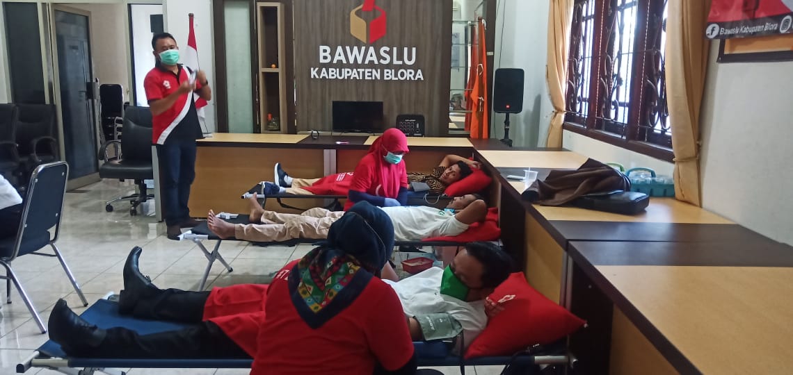 Blora - Badan Pengawas Pemilihan Umum (Bawaslu) Kabupaten Blora bekerja sama dengan PMI setempat menggelar baksos (bakti sosial) dan donor darah di Kantor Bawaslu Kabupaten Blora pada Rabu (8/4).