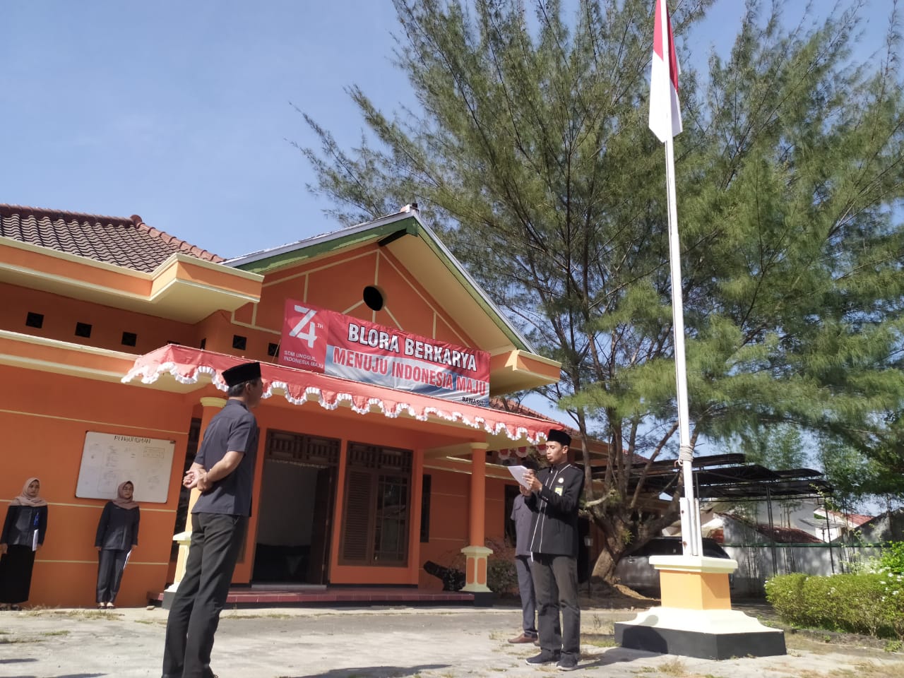 Upacara berlangsung tepat pukul 08.00 WIB diikuti oleh seluruh jajaran anggota Bawaslu Kabupaten Blora. Kordinator Divisi Penindakan Sugie Rusyono menjadi Inspektur Upacara.