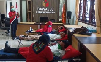 Blora - Badan Pengawas Pemilihan Umum (Bawaslu) Kabupaten Blora bekerja sama dengan PMI setempat menggelar baksos (bakti sosial) dan donor darah di Kantor Bawaslu Kabupaten Blora pada Rabu (8/4).