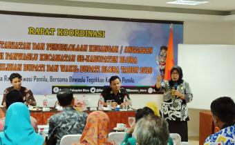 Blora - Hal tersebut disampaikan Sekretaris Daerah (Sekda) Blora, Komang Gede Irawadi dalam Rakor (Rapat Koordinasi) Kesekretariatan dan Pengelolaan Keuangan/Anggaran Panwaslu Kecamatan se Kabupaten Blora di Kyrad Arra Cepu, Kamis (12/3).