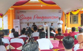 Blora - Satu tahun jelang Pemilihan Umum (Pemilu) 2024 Bawaslu Kabupaten Blora menggelar Siaga Pengawasan “Satu Tahun Menuju Pemilu 2024’ di halaman Kantor Bawaslu Kabupaten Blora, Selasa (14/2/2023).