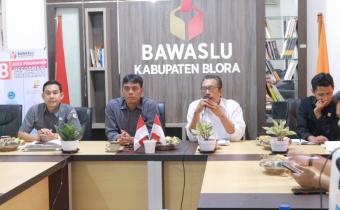 Blora-Pasca penutupan pendaftaran partai politik peserta pemilu tahun 2024, Bawaslu Kabupaten Blora menggelar rapat koordinasi dengan Polres dan KPU Blora.
